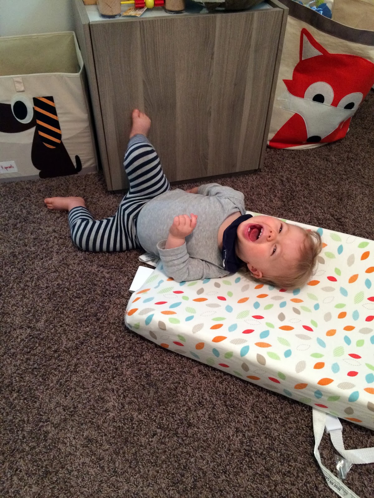 The doctor noticed his molars were really swollen and are probably coming soon which explains why he's been a little extra clingy and fussy lately. He's also getting so physical, into climbing everything, flopping all over the place, bonking his head on all sorts of things and hitting me in the face a couple of times (ugh). Good thing he is so cute!